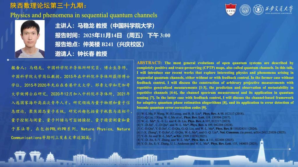 【陕西数理论坛第三十九期】—— Physics and phenomena in sequential quantum channels