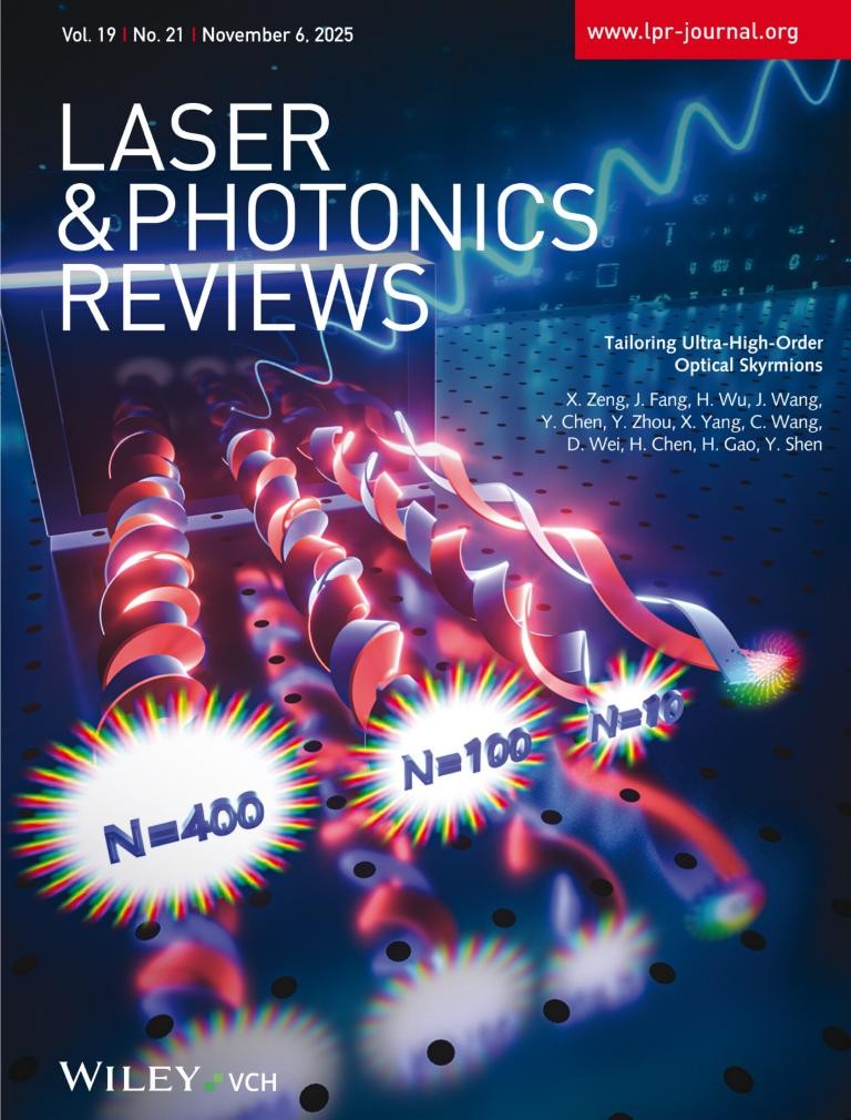 高宏团队联合新加坡南洋理工大学申艺杰团队首次在光学系统中实现超高阶光学斯格明子的产生,最高拓扑数(斯格明子数)可达400阶。该研究成果以“Tailoring Ultra-High-Order Optical Skyrmions”为题,正式发表在国际著名光学期刊Laser & Photonics Reviews上,并被期刊选为Inside Front Cover文章。